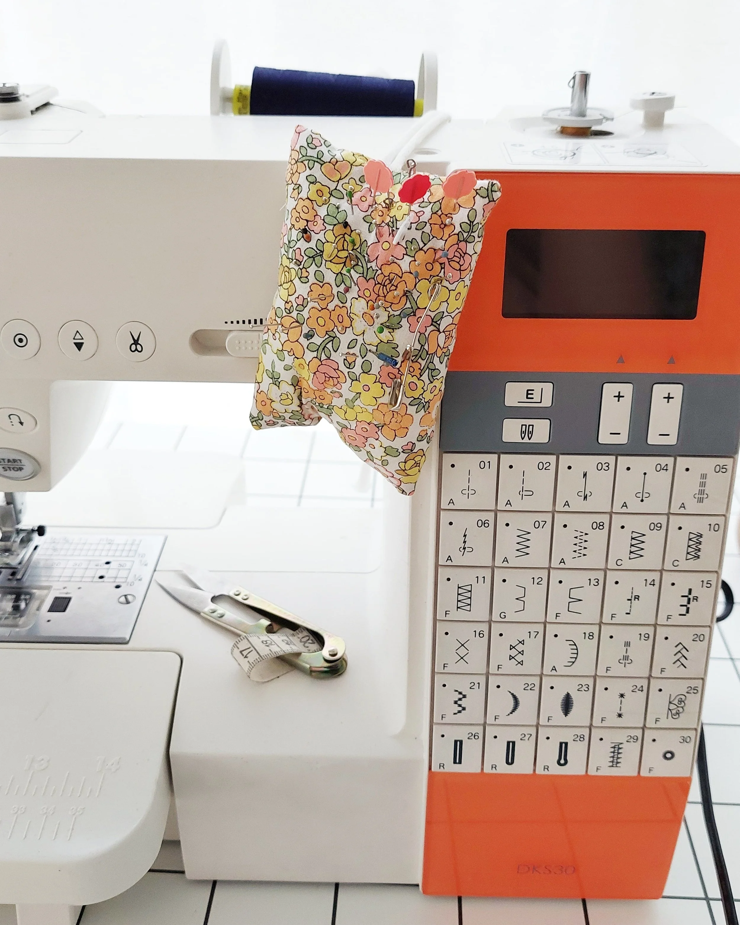 I made a couple of new pincushions for the machines (tutorial here), and a proper pressing ham that I’m very happy with (free pattern by Cornelius Quiring). For home, I made some placemats with a cute resin-coated print I found at GingerTea.