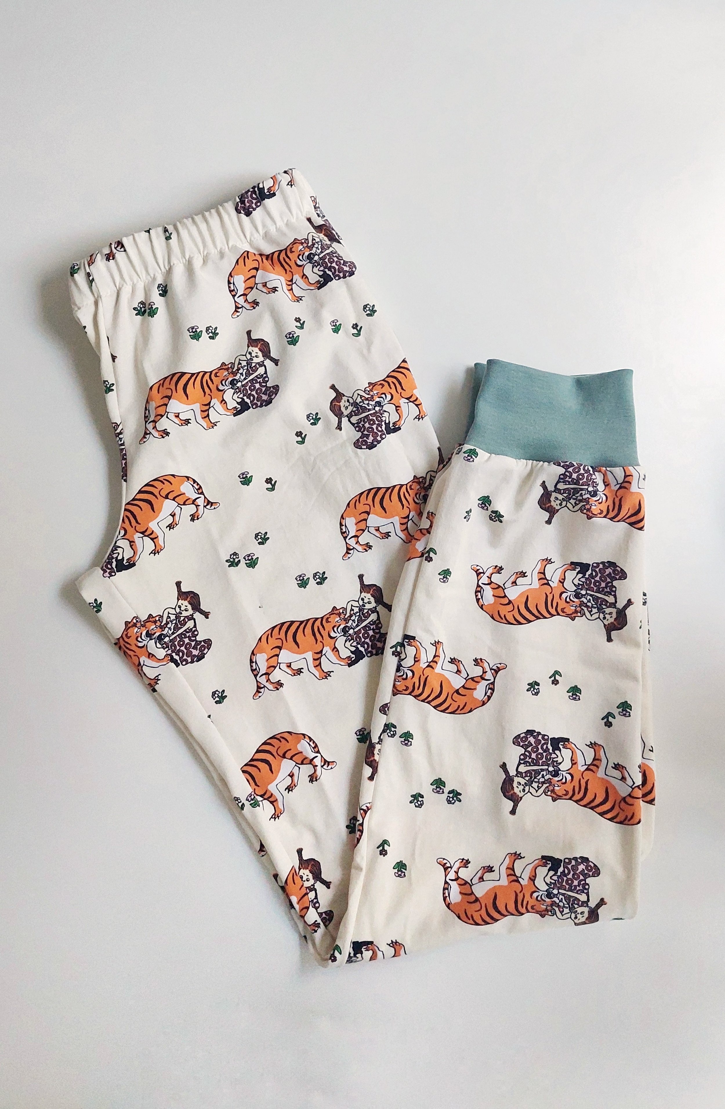The PJ pants were made from this amazing Pippi fabric I got from Elvelyckan Design a couple of years back. I had already made her a hoodie with this fabric combined with another knit, but I still had leftovers and managed to squeeze out a pair of pants, adding rib knit cuffs. I’m still not accustomed to the fact that her size is 152 cm now, so “squeezing” things out of remnants is actually complicated. Ten points for this print—it takes me straight back to my childhood, so it was a 100% nostalgic buy, haha.