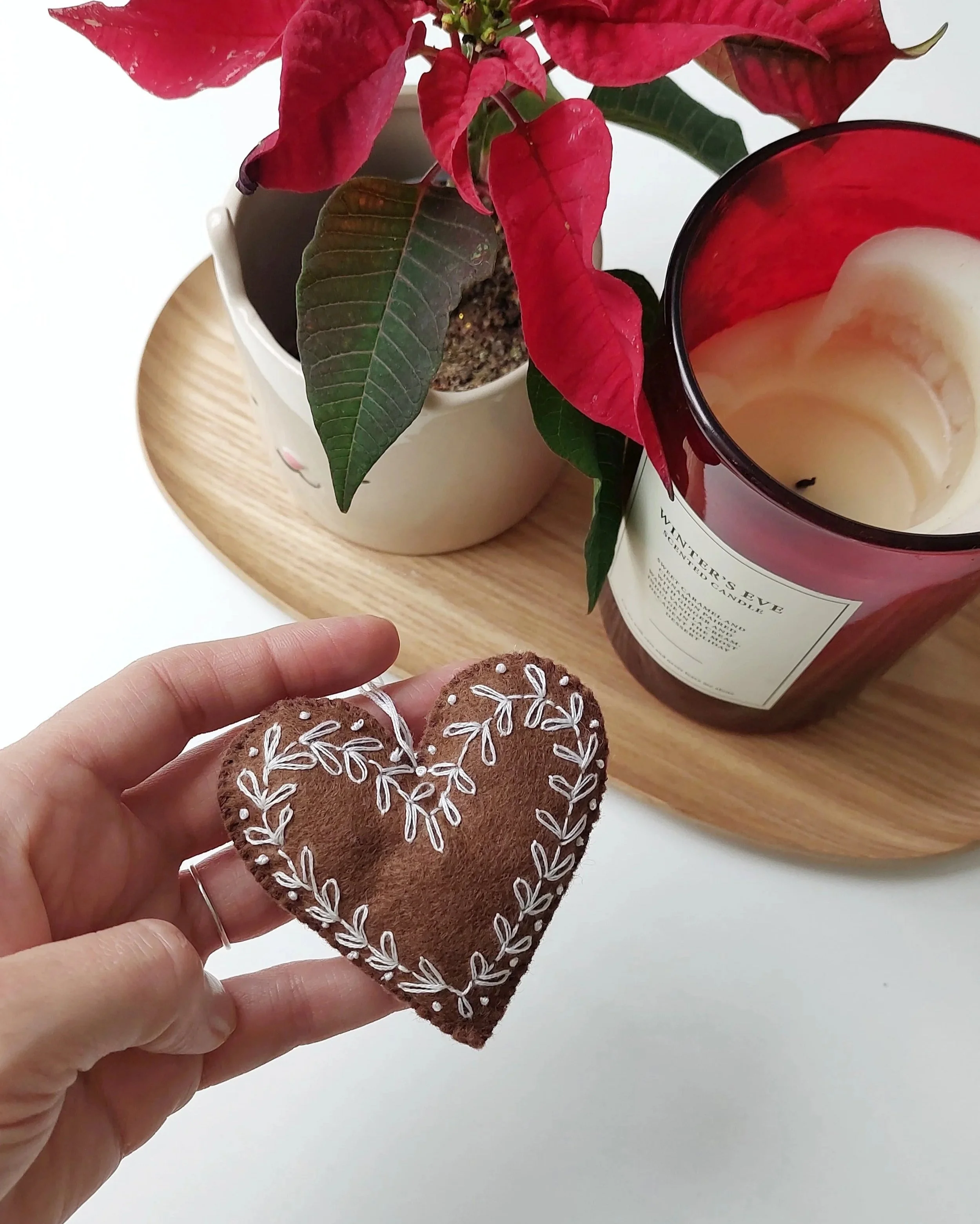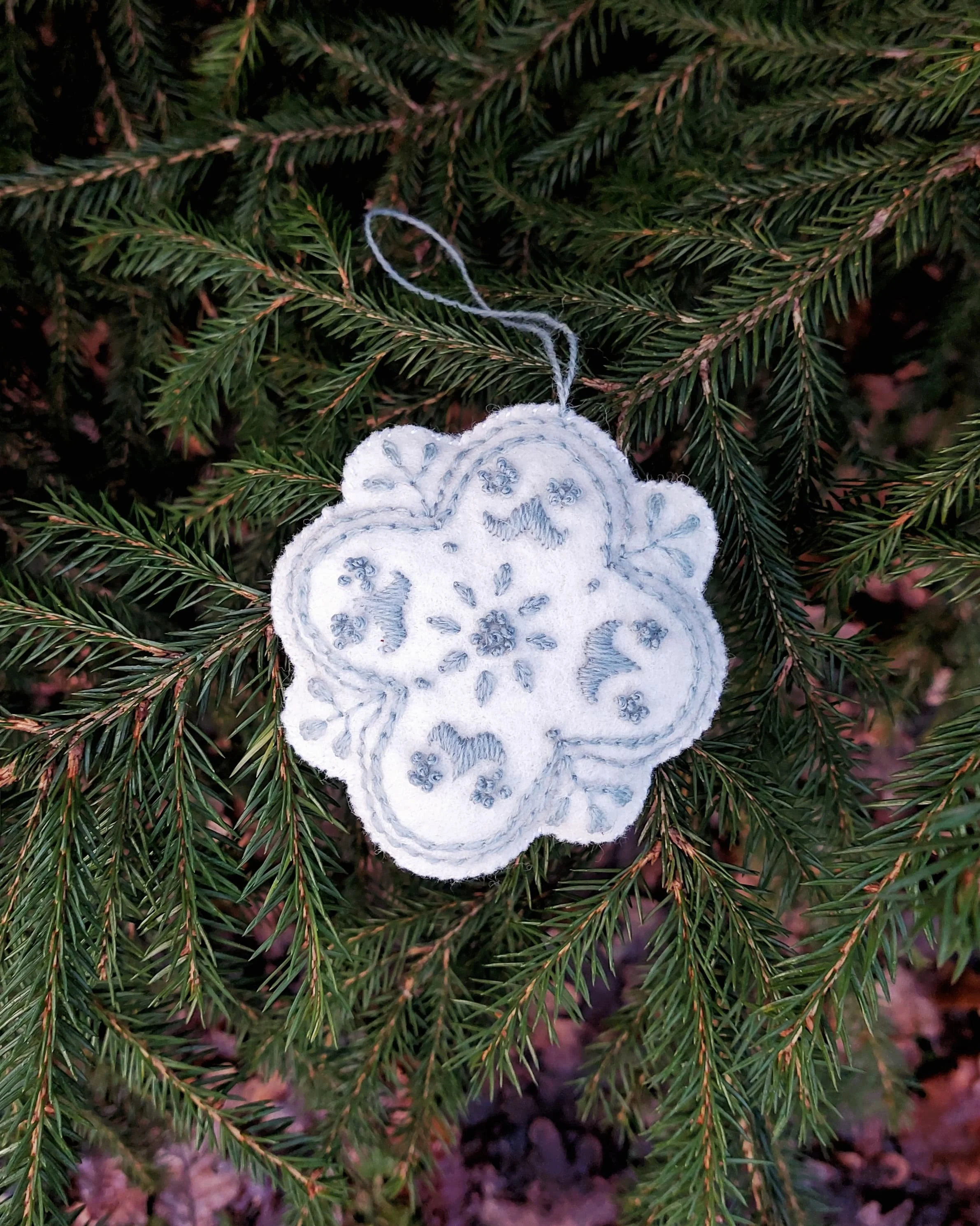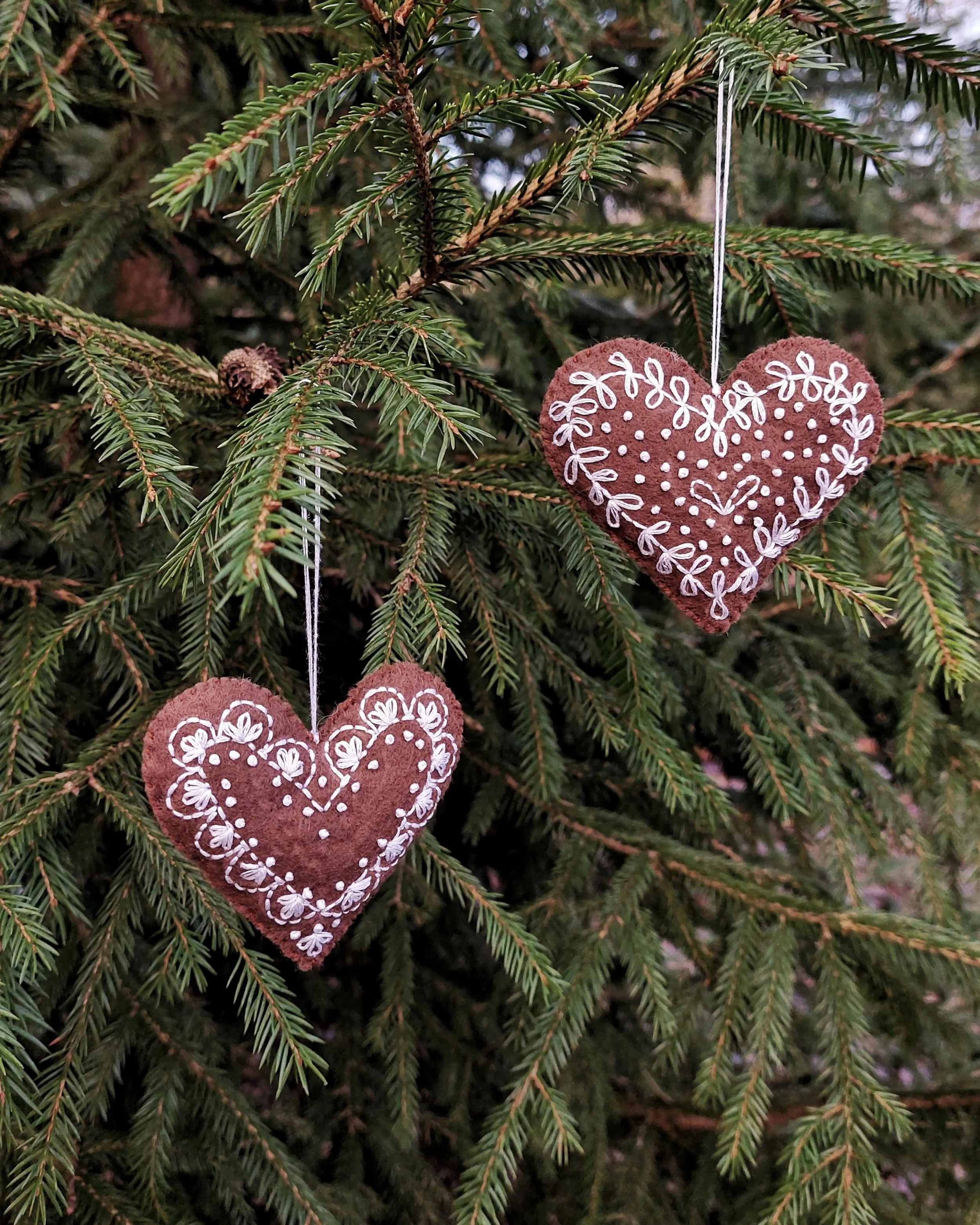Later, I did the annual Christmas ornament for my daughter, this time using the Piper Piping pattern by Larissa Holland (on the photo you can see the whole collection). I also made a couple of improvised gingerbread hearts as gifts.