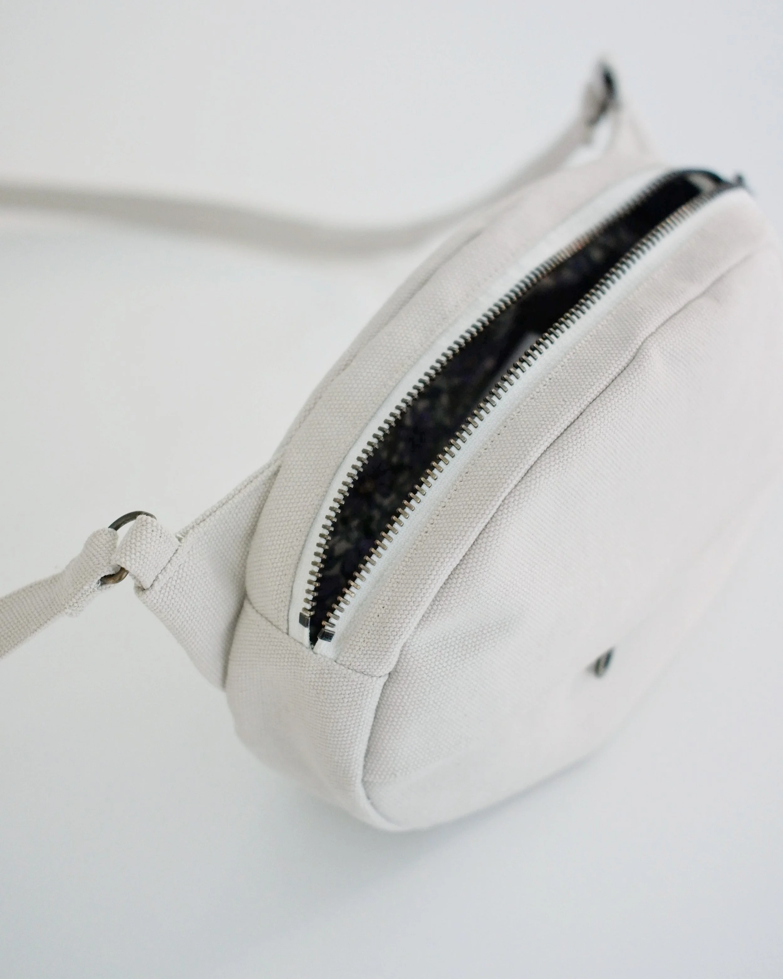 The crossbody bag is another project that turned out exactly as I had hoped: the pattern is the Balance Pouch by Incomplete Stitches, and the sturdy canvas fabric is from Mina Mina (Barcelona). It took some hand sewing for the interior bias binding, but every bit was worth it. I love this neutral piece so much!