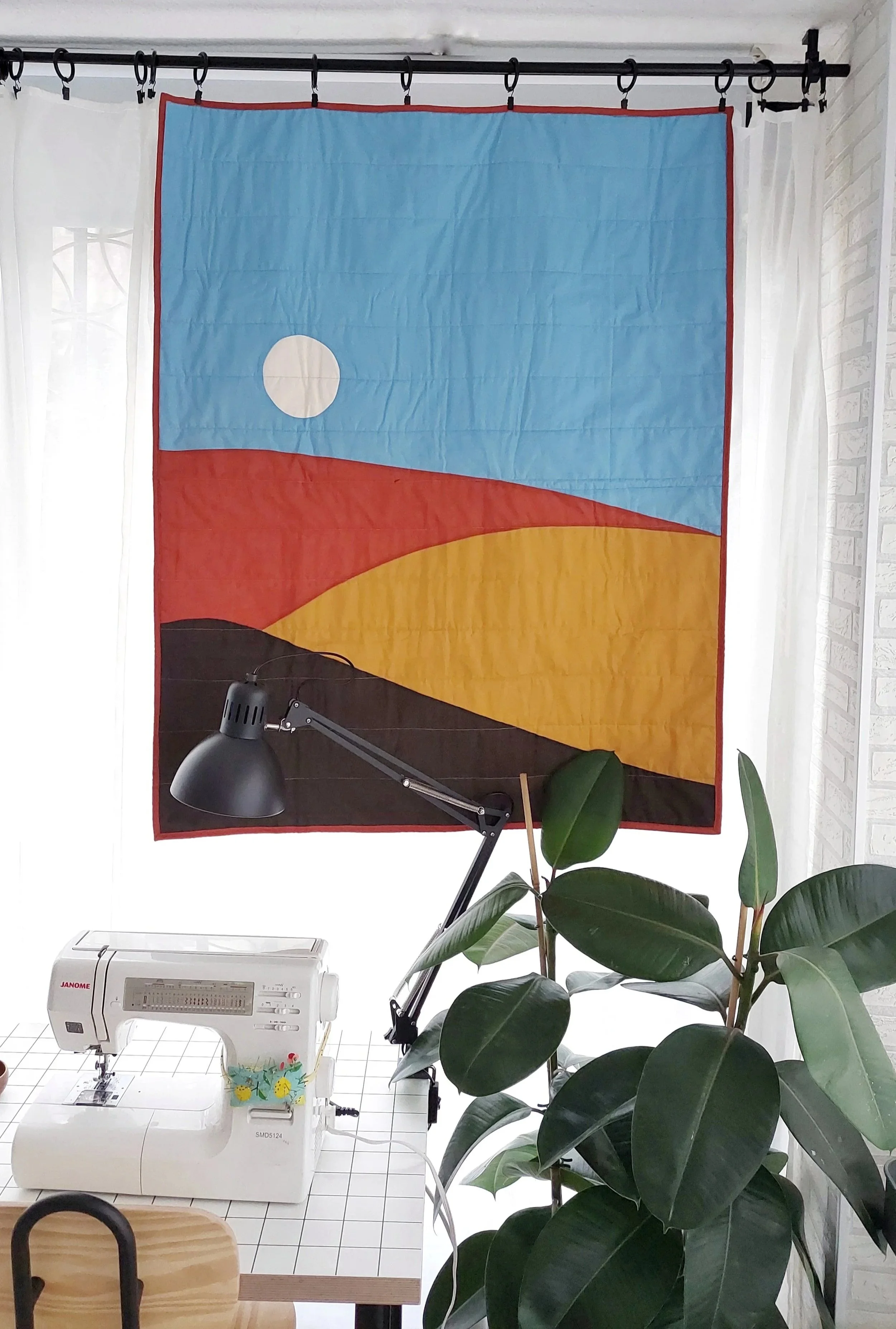 I made a baby quilt as a gift and really liked it. The baby’s name is Alba (in English dawn), and the scene has the colors of that early stage of the day. It made me want to spend more time quilting (something I think about every year).