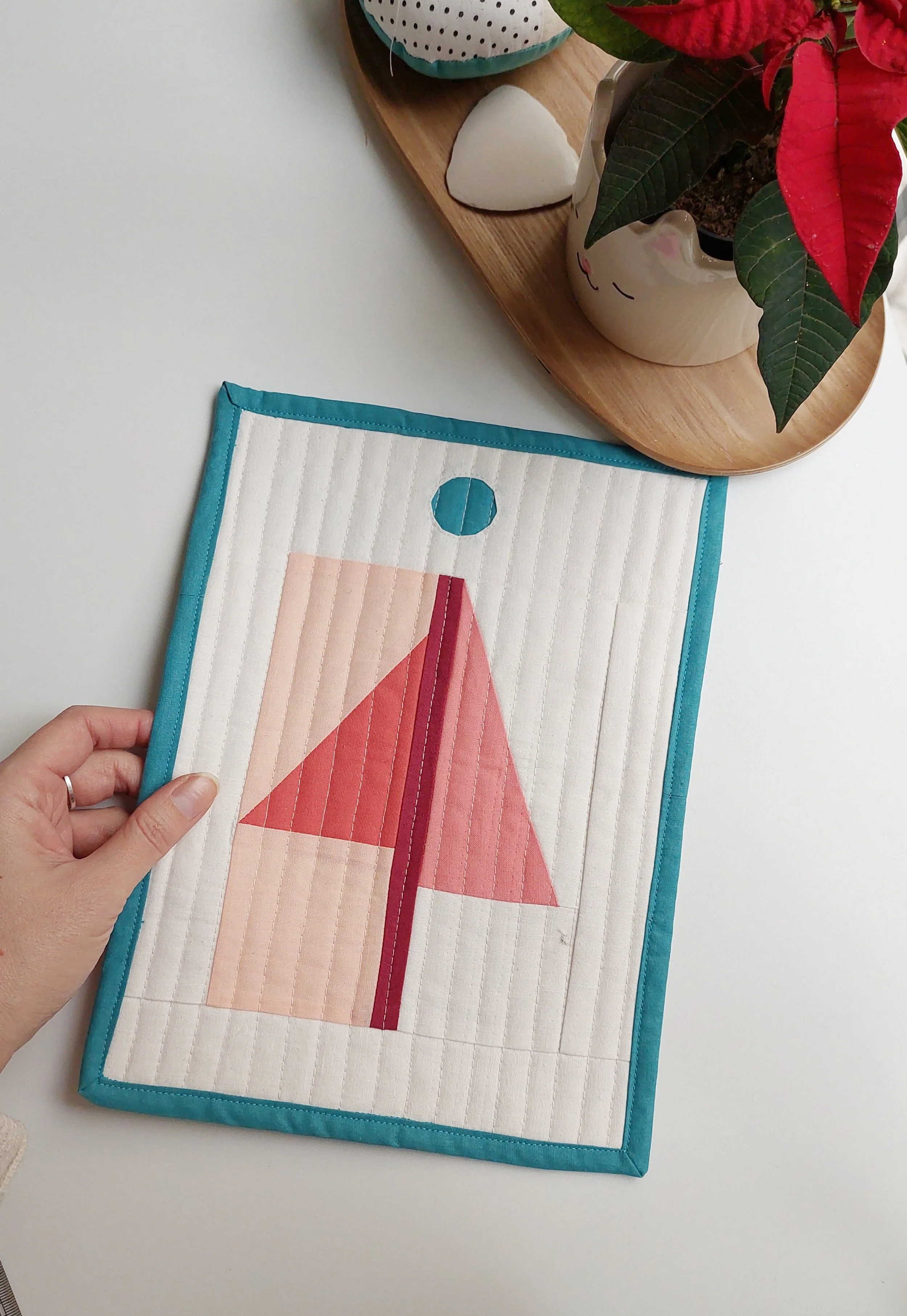 Hice una colcha de bebé como regalo y me gustó mucho. La niña se llama Alba y la escena tiene los colores de ese momento temprano del día. Me hizo querer tener más tiempo para acolchar (algo que pienso todos los años).
