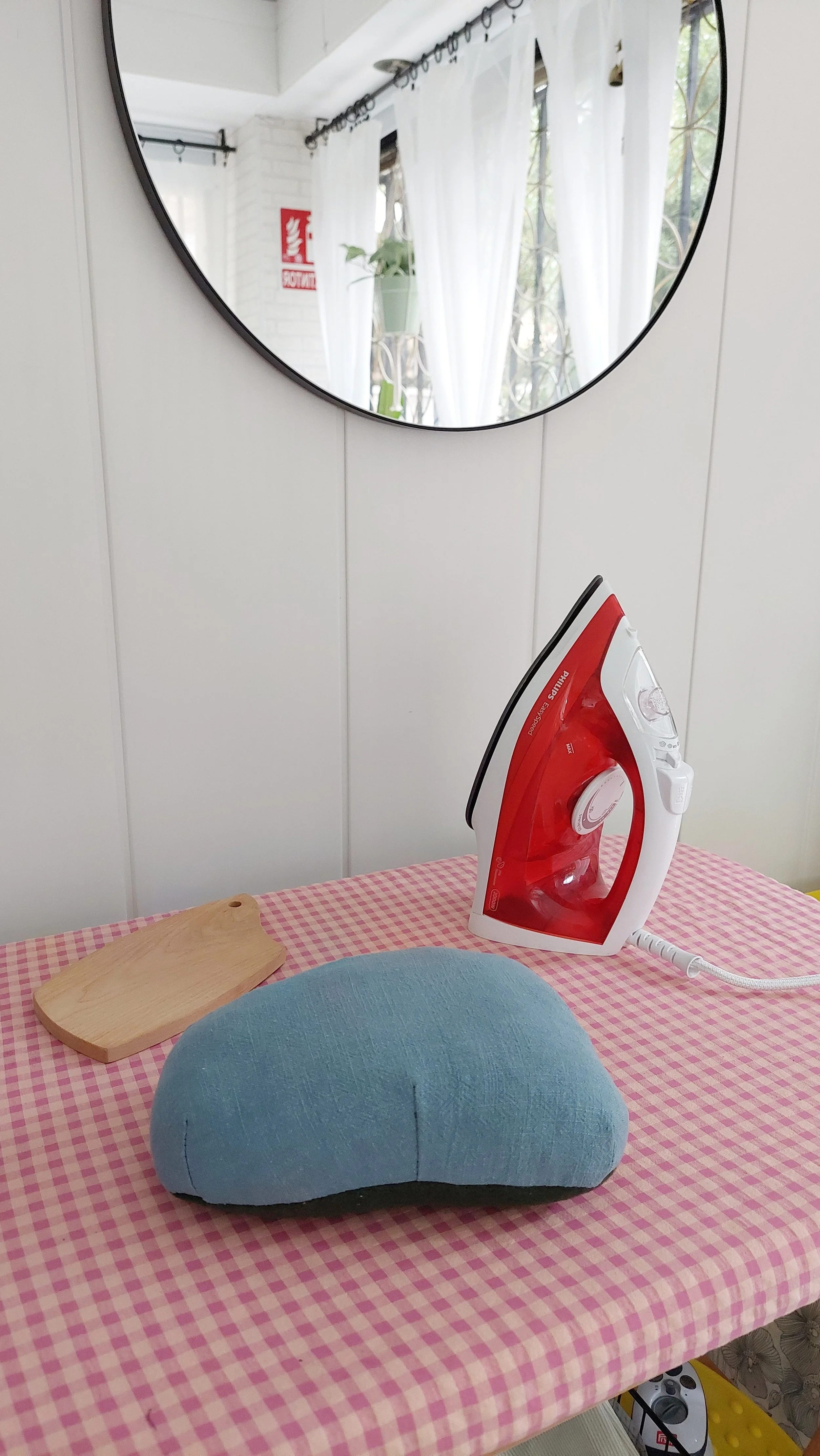 Now onto tops. I made this burgundy rib knit wrap top that looks cute but somehow still ended up “not being my color”—surprise to no one who knows me, haha (the pattern is self-drafted and the fabric is from Casa de Retall). I need to make another one, as I love the style, probably in white or a similar color. I actually already had one of these in old pink in my wardrobe, made last year, but the fabric developed tons of pilling that was impossible to remove neatly, so I had to let it go. I hope my third version will be the winner, because a good wrap top is as nice to have as a good wrap skirt.