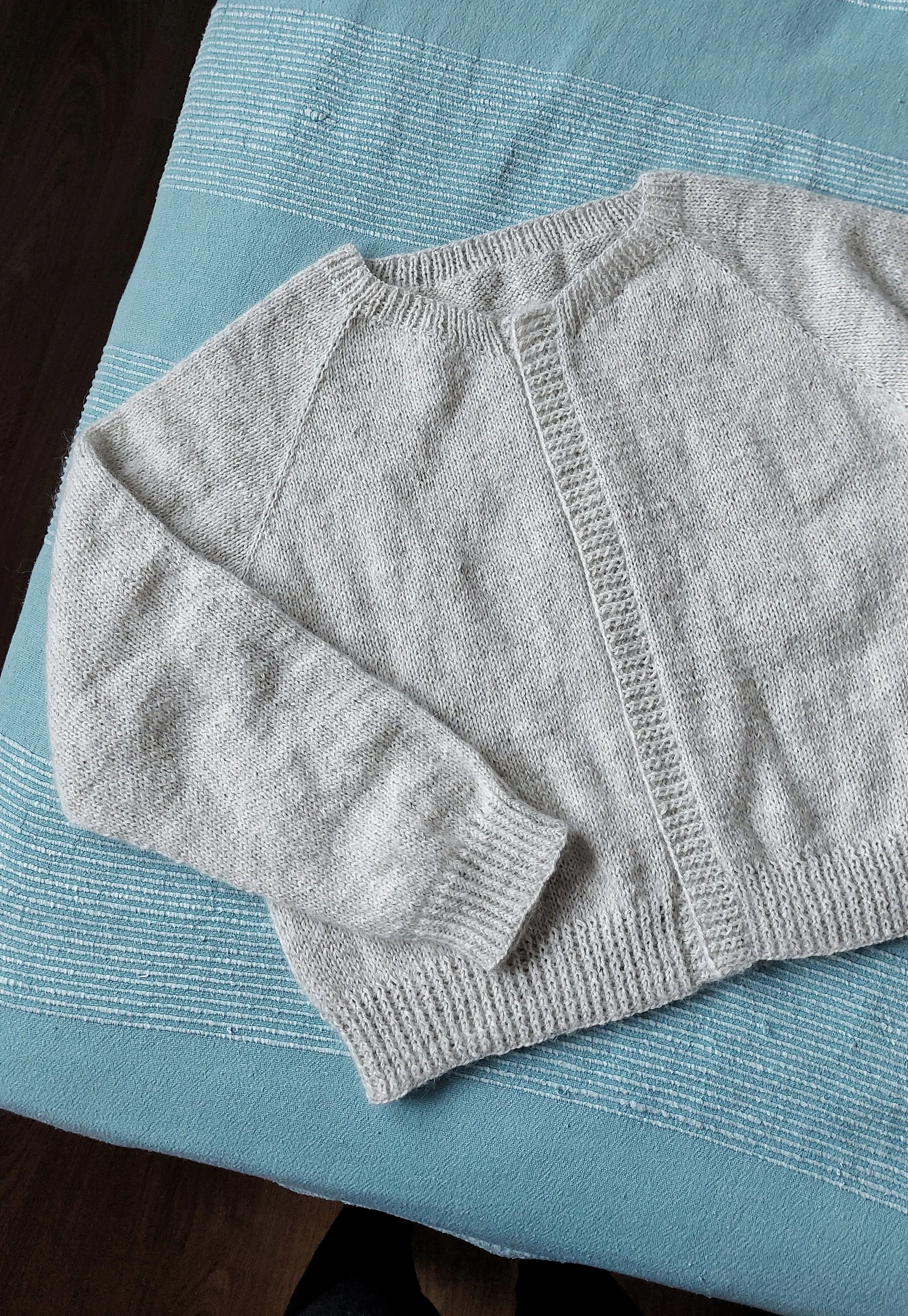 Por desgracia, el cárdigan gris que terminé no ha salido como había imaginado. Improvisé las medidas y pagué el precio correspondiente: el cuello quedó enorme y mis intentos por arreglarlo no tuvieron éxito. La forma así más en general tampoco me entusiasma, así que estoy debatiéndome si deshacerlo y reutilizar el hilo, ya que me encanta cómo queda (es Saona de Wooldreamers (lana/algodón) junto con mohair de Rowan). Tejerlo fue aburrido y el resultado fue, bueno, decepcionante, definitivamente poco motivador. Me río por no llorar, jaja.