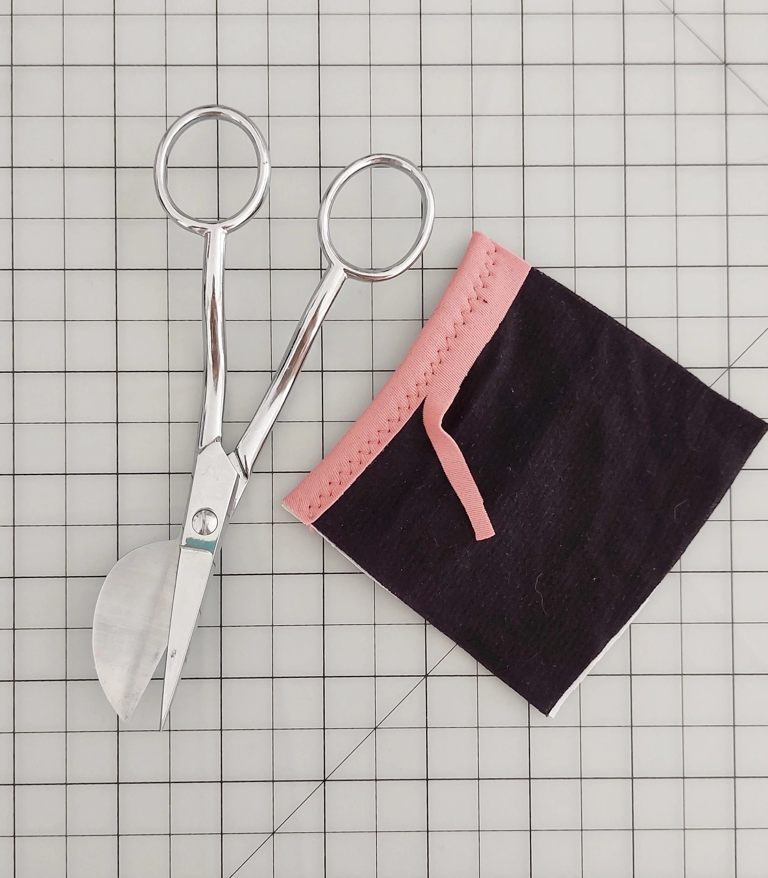 Una vez que hayas terminado de coser, te sobrará tela en el revés del ribete. Ahora solo tienes que cortar el exceso cerca de la costura y ya lo tienes.