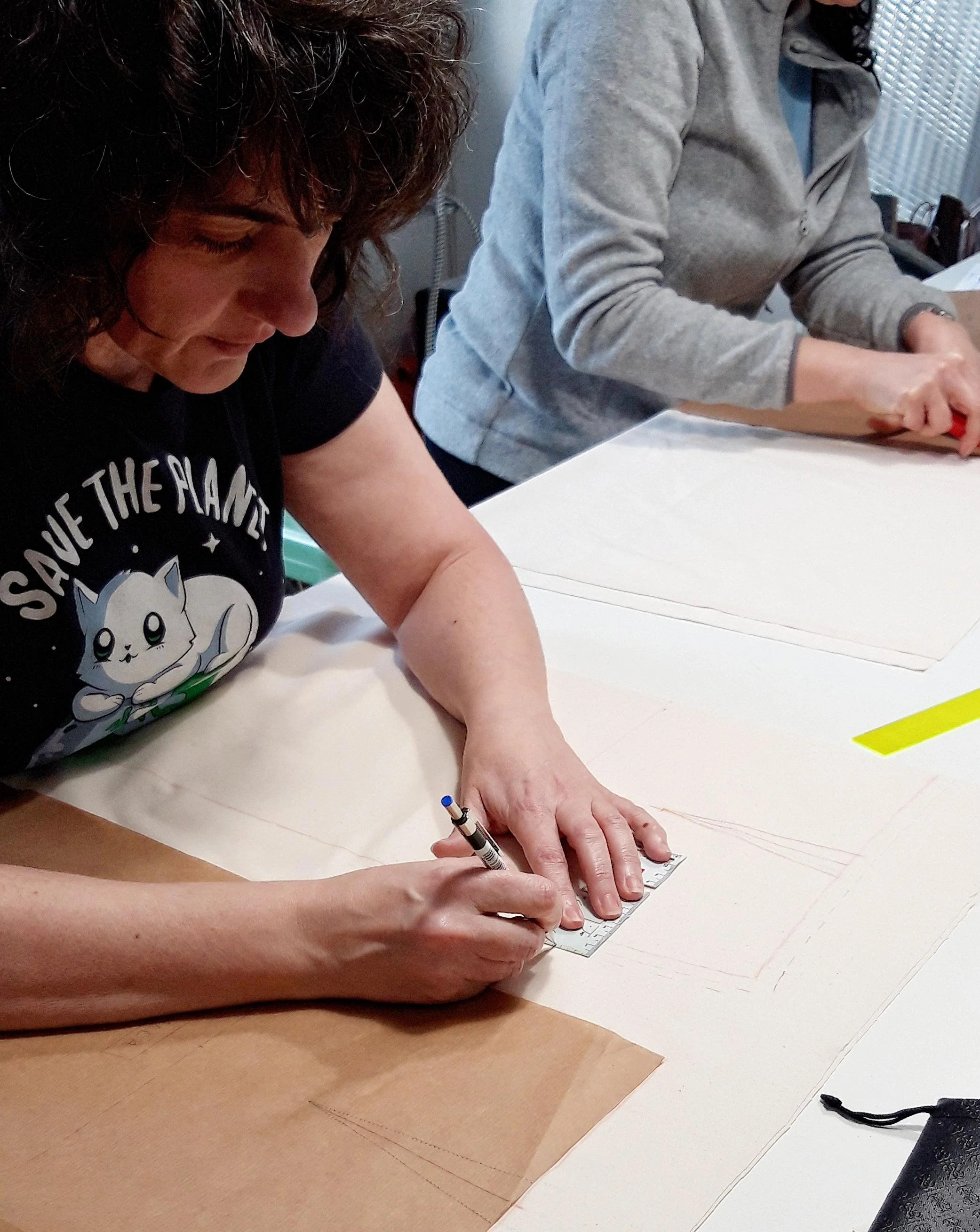 El primer paso del curso es hablar sobre cómo tomar las medidas y cómo crear un patrón base de falda. Desde allí confeccionamos la falda en tu talla en tela de retor y hacemos ajustes según tu cuerpo para conseguir que te quede bien.
