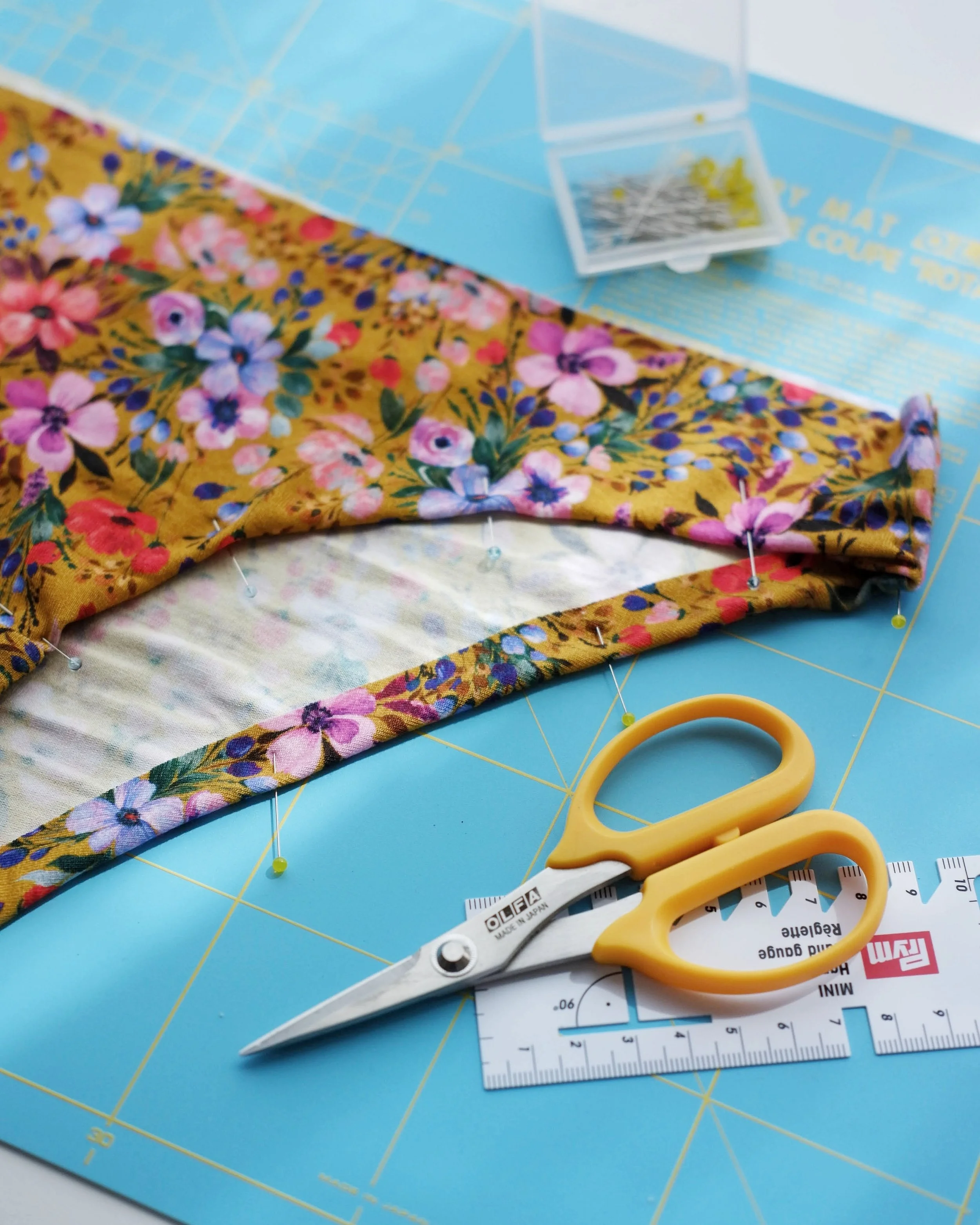 Rulers: having a basic triangle ruler works well, but if you want level up, I’d recommend the Olfa 60x15 cm and 30x15 cm quilting rulers for accurate measuring. For marking small seam allowances I like the small plastic Prym rulers I have at the studio.